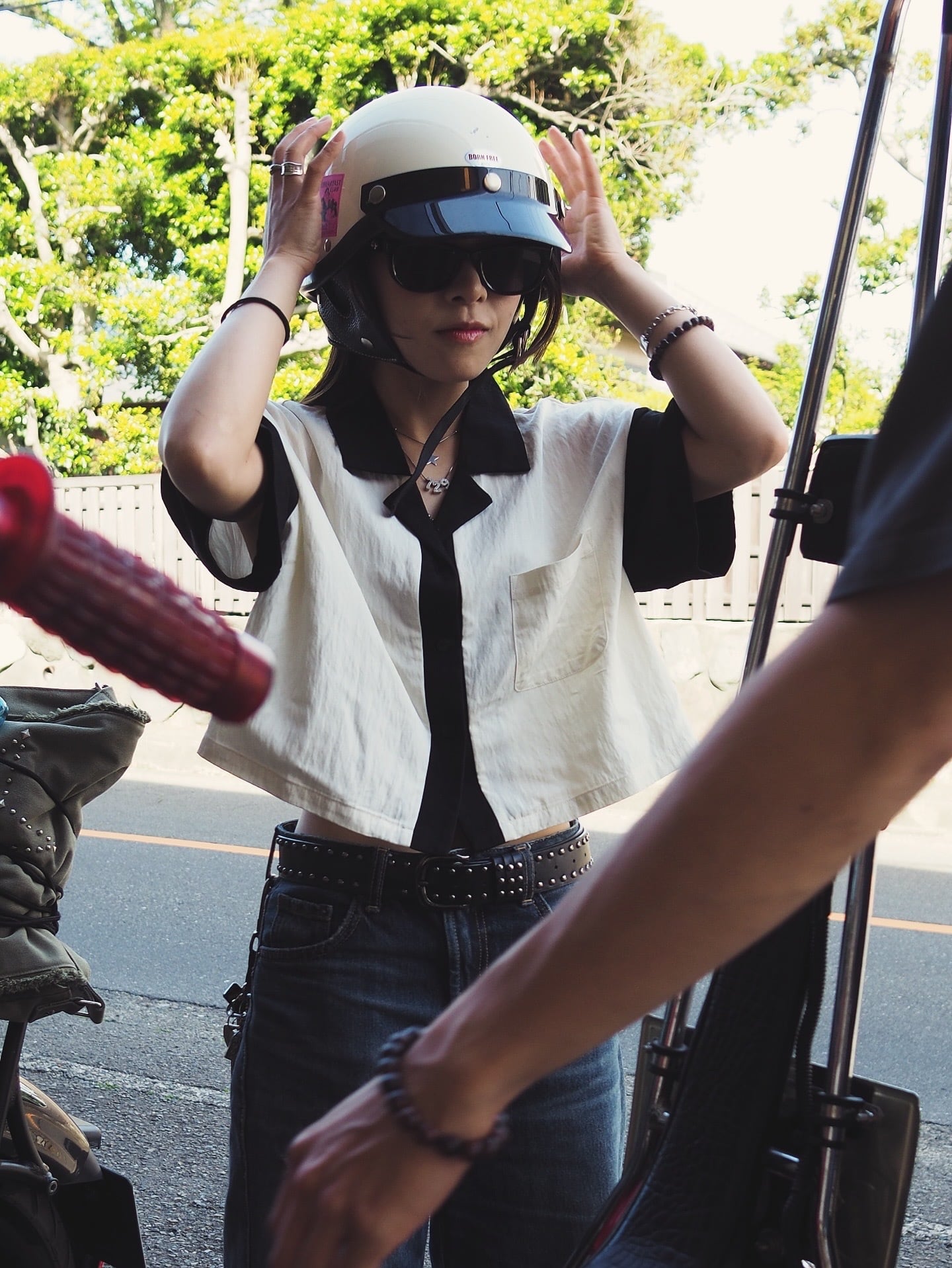 【ASHMOOR】 Black & Ecru Cropped Short Sleeve Shirt